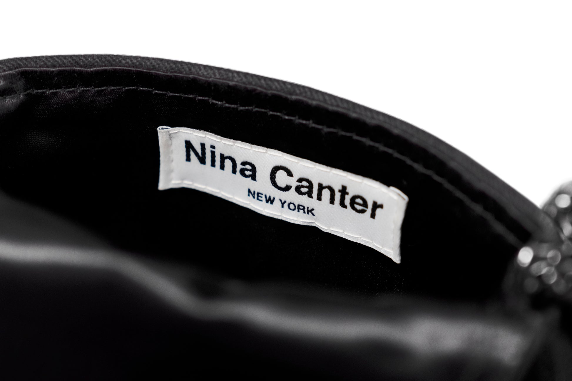 1 of 1 Nina Canter New York purse featuring a vintage broach. The outer shell is made from heavyweight black cotton twill, and the lining is black satin. Strong magnetic snap concealed inside the lining. 40" black stainless steel 11mm Cuban link chain attached seamlessly and securely. Woven label sewn into the lining. Lining is hand finished to preserve top stitching. This unique item was handmade to be enjoyed for a long time.